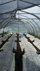 As fall is approaching there are some tasks we do to prepare. Covering tender crops with row cover will give us a few extra weeks of harvest. Ten degrees of warmth for every layer. We cut back the tops of the pepper and tomato plants so that plant’s energy goes into maturing the larger fruits. Cleaning up beds of plant debris and planting a cover crop for soil nutrition and protection. Harvesting herbs to dry and seed heads for next years crop.
