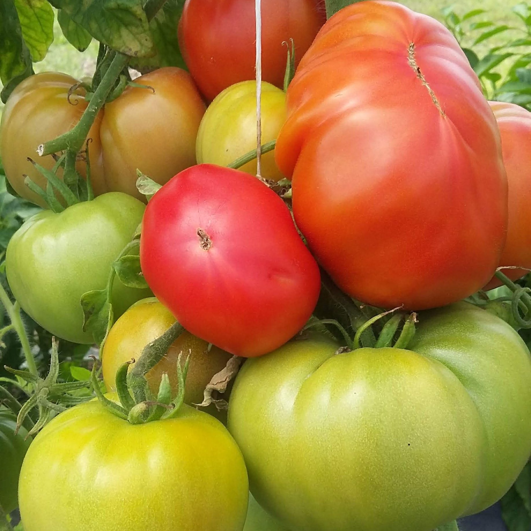 The tomatoes are slowing down in their production but we still have some amazing clusters in the greenhouse. We’re still fighting off the hornworms and some creature outside who eats the low hanging fruit from the bottom up, leaving us a hollowed-out shell! Does anyone know who that might be?